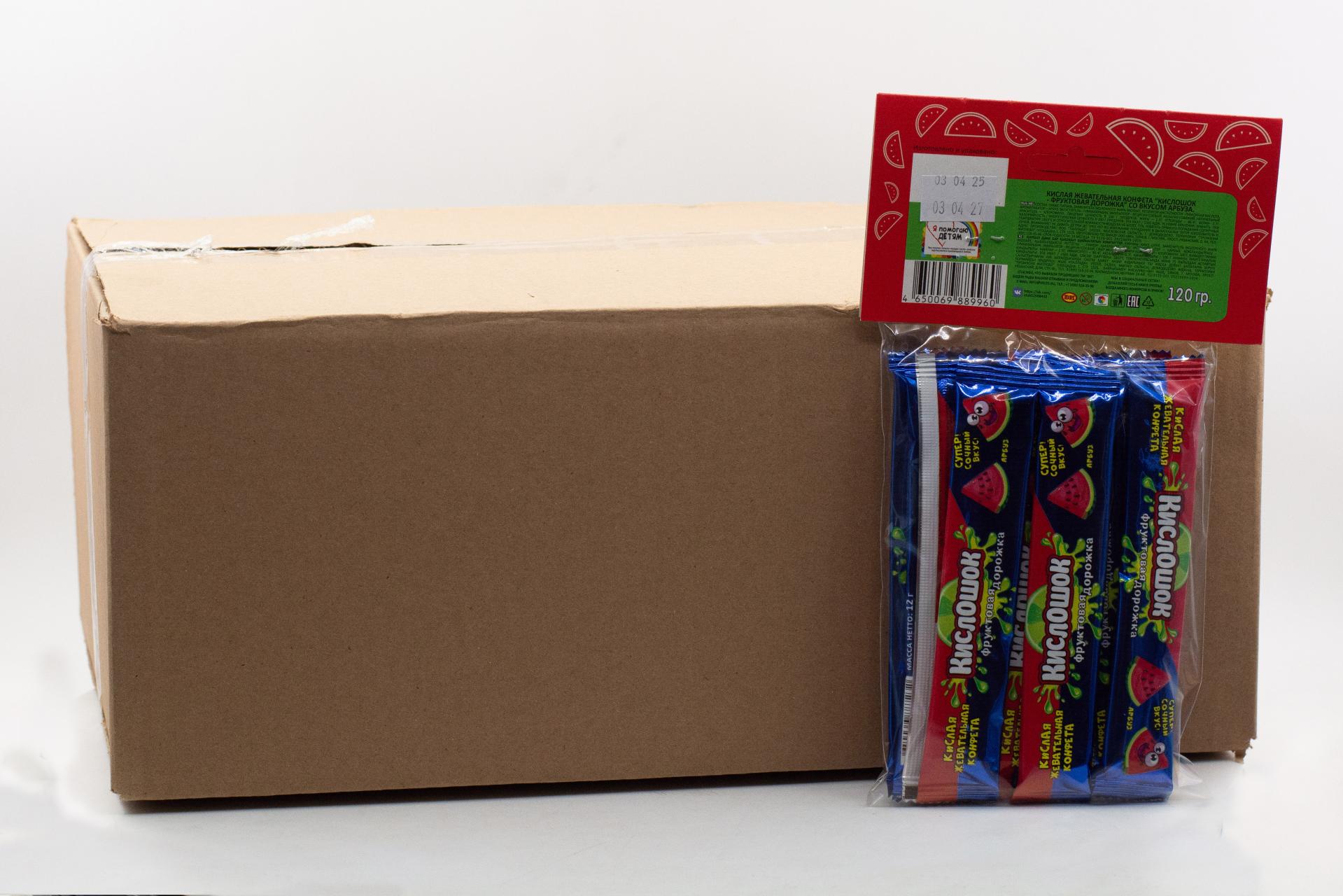 Кислая жевательная конфета Кислошок - фруктовая дорожка 10 со вкусом арбуза (Россия) 120г0,00 руб. за штуку (в упак. 36 шт.) |